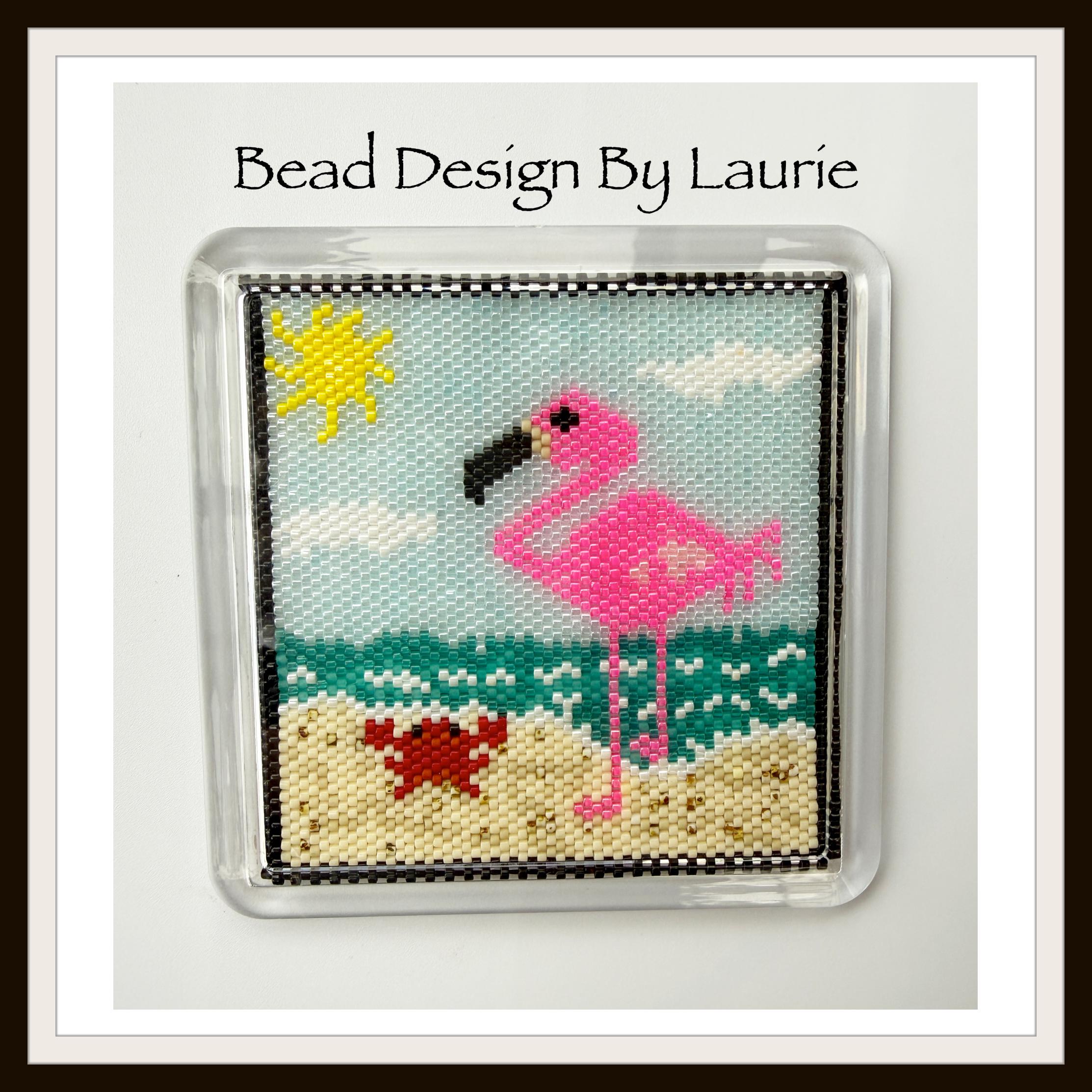 I recommend using Delica’s #11 beads, if you use other beads the size may change and not fit the acrylic coaster. 80m x 80M insert size. The acrylic coaster blanks can be ordered on Etsy.